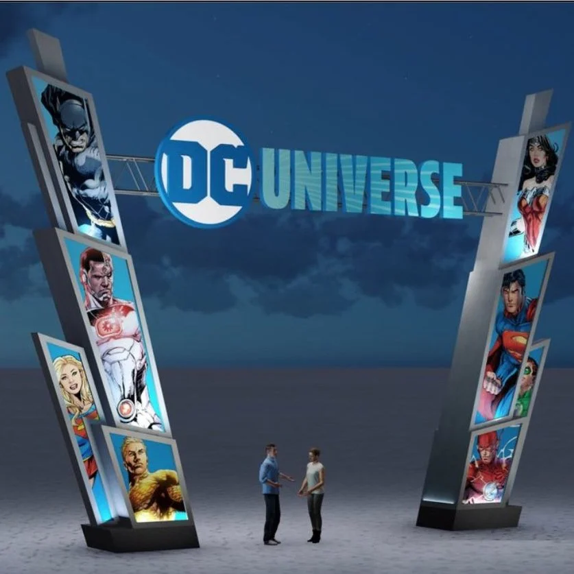This DC Comics themed building facade was designed to fit in an entire DC Universe area development. This was created for Six Flags Magic Mountain.